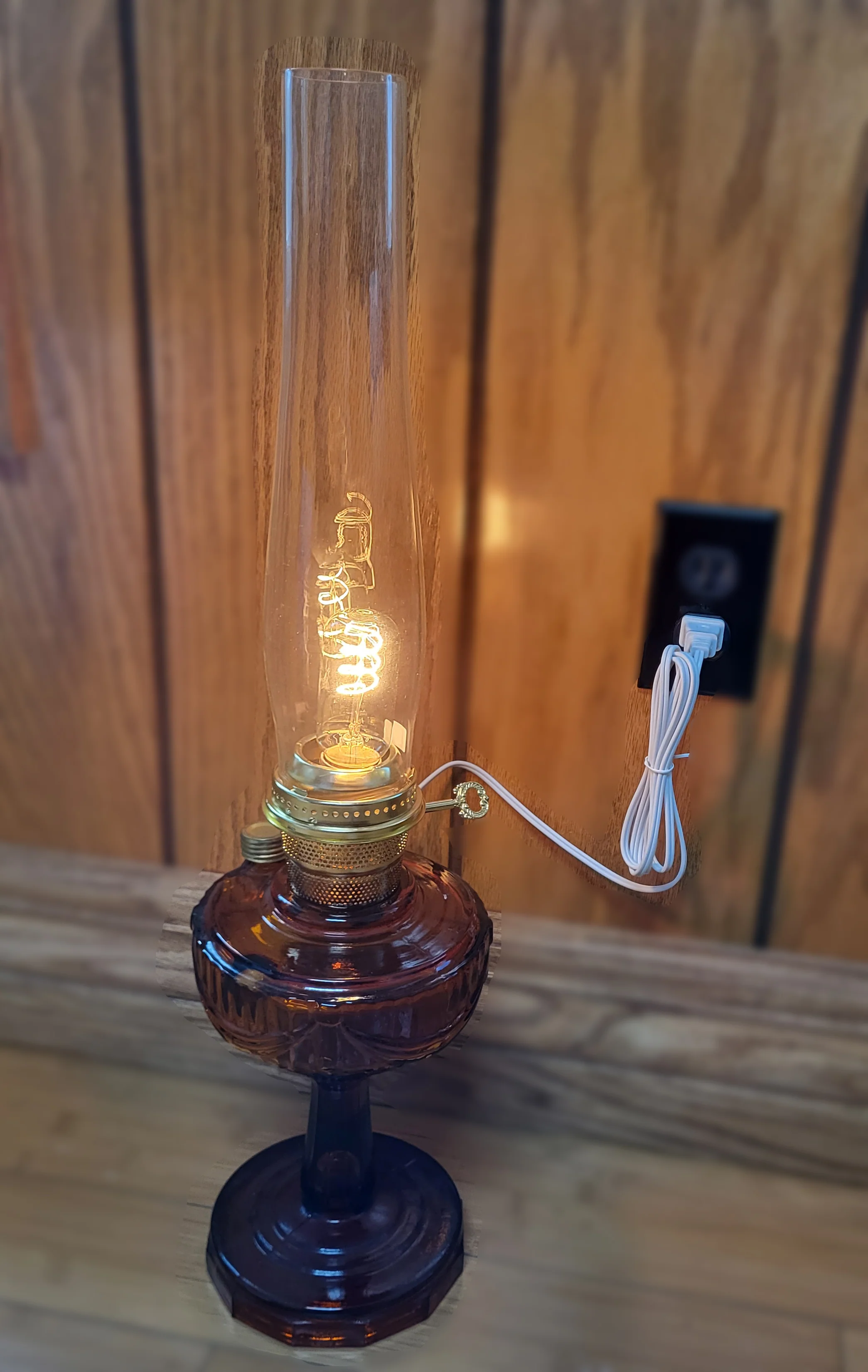 Solid Brass Electrified Burner* designed to fit Aladdin® Brand lamps and many B & P Lamp Supply lamps, assembled with U.L. listed components. 2" coarse thread base will fit most glass model lamps. Accepts a 2-5/8" regular or twist lock chimney. 6 ft. cord. Your choice of:
